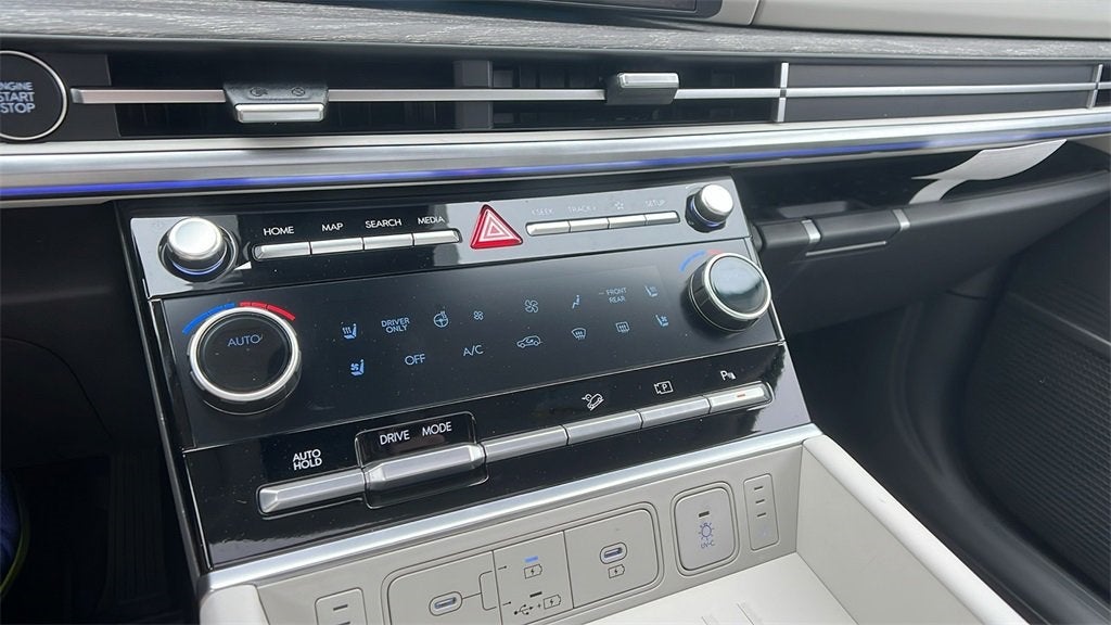 - Radio: AM/FM/HD Bose Premium Audio System -inc: 12 speakers including subwoofer, external amplifier, 12.3" wide touchscreen, Apple CarPlay and Android Auto, Bluetooth® hands-free w/wireless audio streaming, dynamic voice recognition, USB connectivity, SiriusXM, wifi hotspot, Blue Link connected car system, navigation system including traffic flow w/incident data via HD Radio (HERE), OTA updates (map only) and rear seat quiet mode