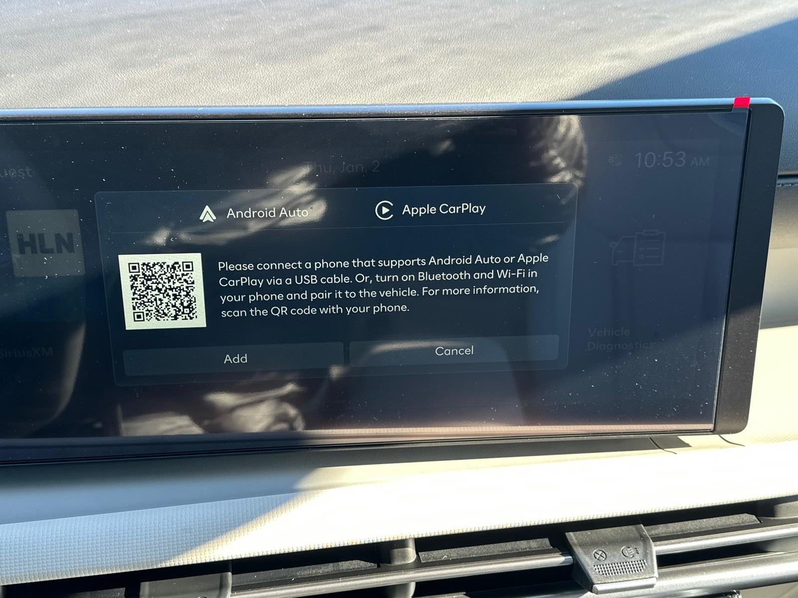 - Radio: AM/FM/HD Audio System -inc: 12.3" color touchscreen display, 6 speakers, SiriusXM satellite radio system (3-month trial subscription), wireless Apple CarPlay and Android Auto integration, controller OTA update capability, Blue Link connected car system and USB connectivity
