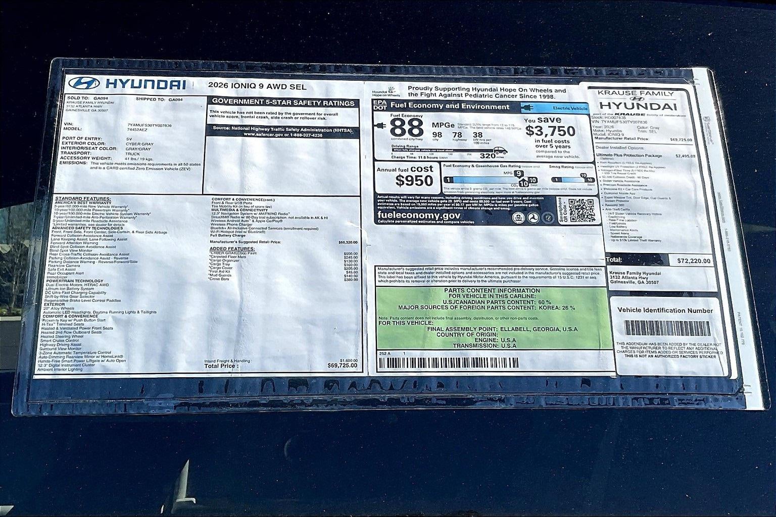 Cyber Gray 2026 Hyundai IONIQ 9 SEL AWD 1-Speed Automatic Electric Motor KRAUSE FAMILY HYUNDAI HAS ALL LISTED SALES PRICES WITH DEALER FEES INCLUDED-WE ARE ONE OF THE FEW DEALERS TO DO SO! WHEN SHOPPING GET YOUR QUOTES IN WRITING.