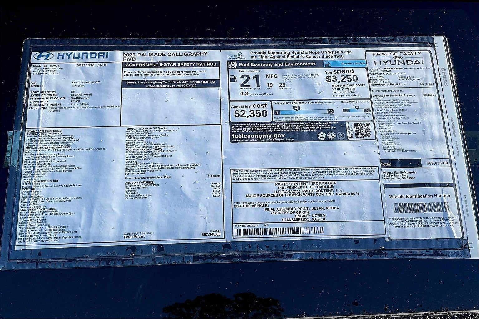 Creamy White Pearl 2026 Hyundai Palisade Calligraphy FWD 8-Speed Automatic V6 KRAUSE FAMILY HYUNDAI HAS ALL LISTED SALES PRICES WITH DEALER FEES INCLUDED-WE ARE ONE OF THE FEW DEALERS TO DO SO! WHEN SHOPPING GET YOUR QUOTES IN WRITING.