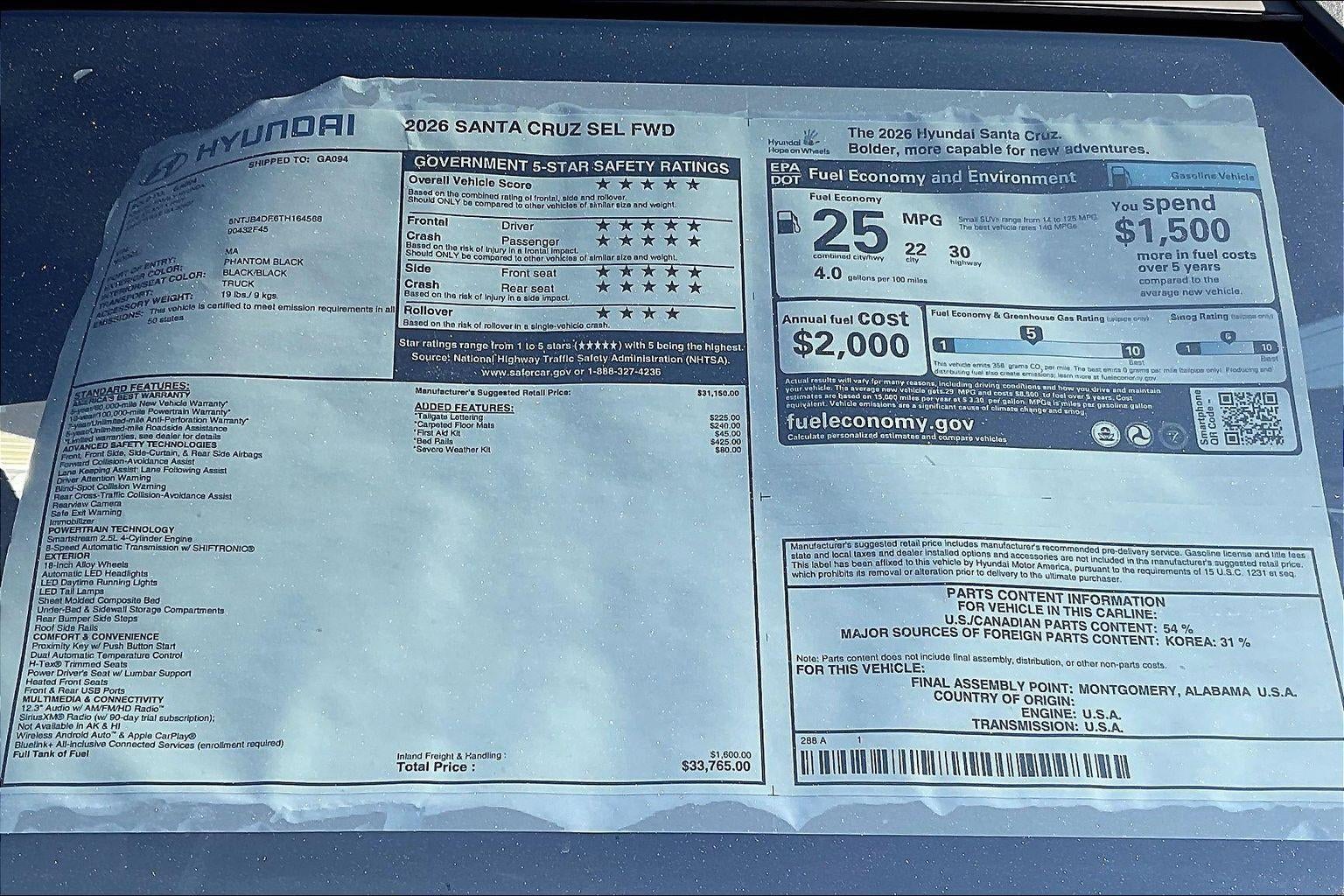Phantom Black 2026 Hyundai Santa Cruz SEL FWD 8-Speed Automatic with SHIFTRONIC 2.5L I4 KRAUSE FAMILY HYUNDAI HAS ALL LISTED SALES PRICES WITH DEALER FEES INCLUDED-WE ARE ONE OF THE FEW DEALERS TO DO SO! WHEN SHOPPING GET YOUR QUOTES IN WRITING.