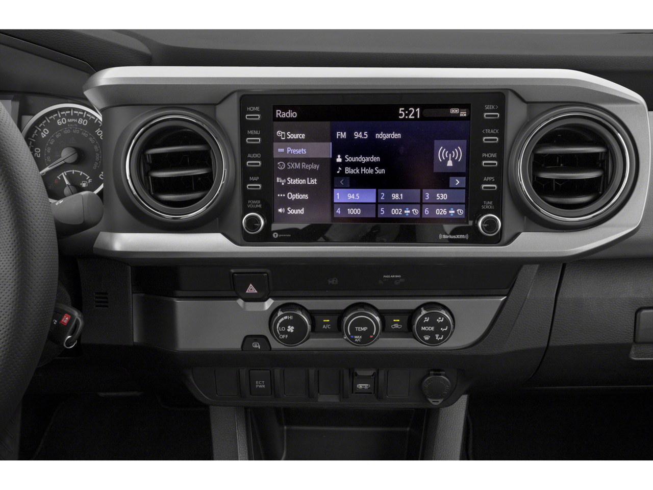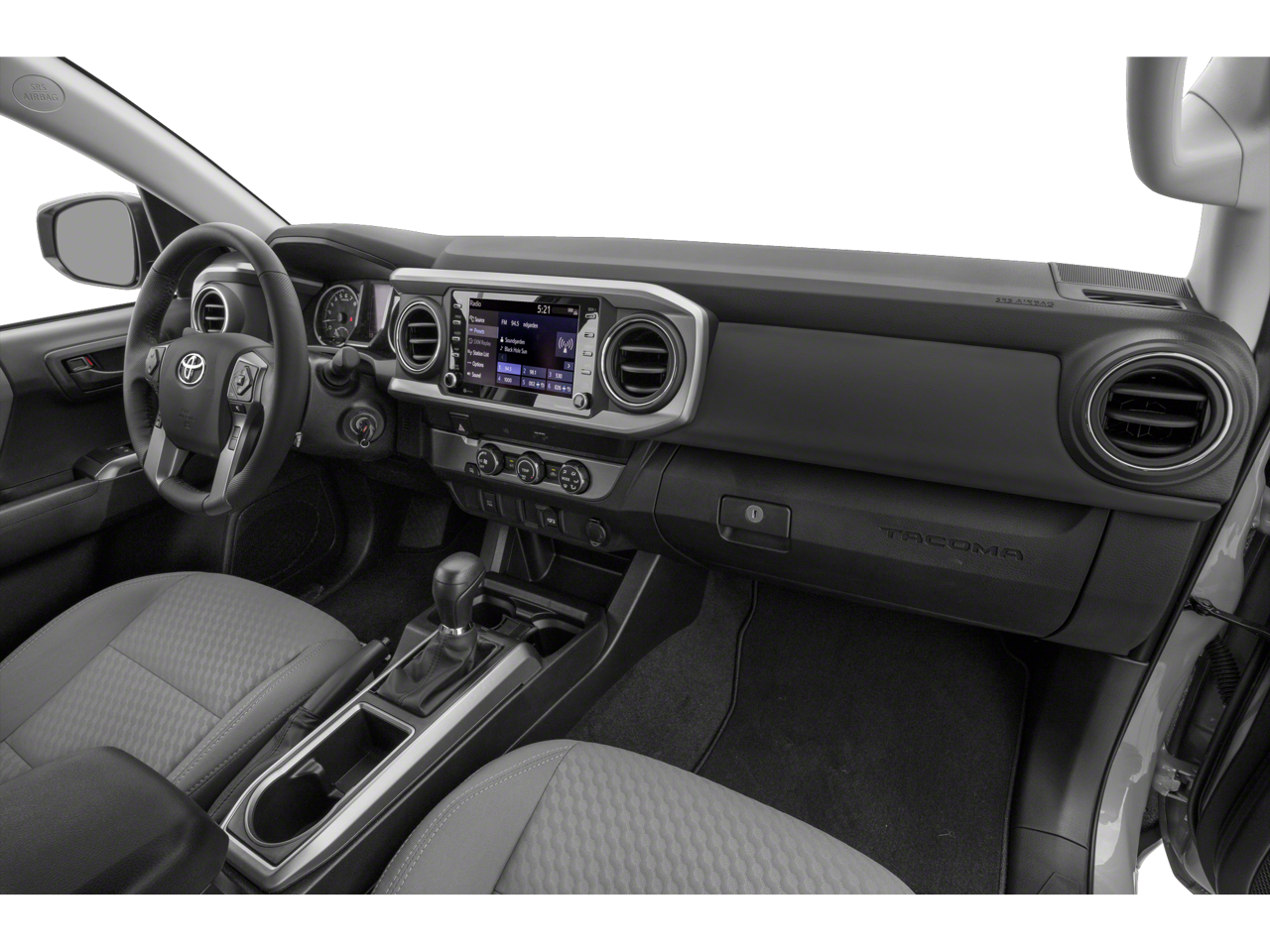 Celestial Silver Metallic 2023 Toyota Tacoma SR5 V6 4WD 6-Speed 3.5L V6 4WD, ABS brakes, Active Cruise Control, Air Conditioning, Alloy wheels, Automatic temperature control, Electronic Stability Control, Front dual zone A/C, Heated door mirrors, Illuminated entry, Low tire pressure warning, Remote keyless entry, Traction control.